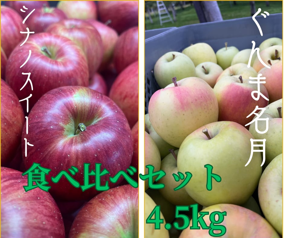 「シナノスイート」と「ぐんま名月」4.5kg 10個~16個入り。